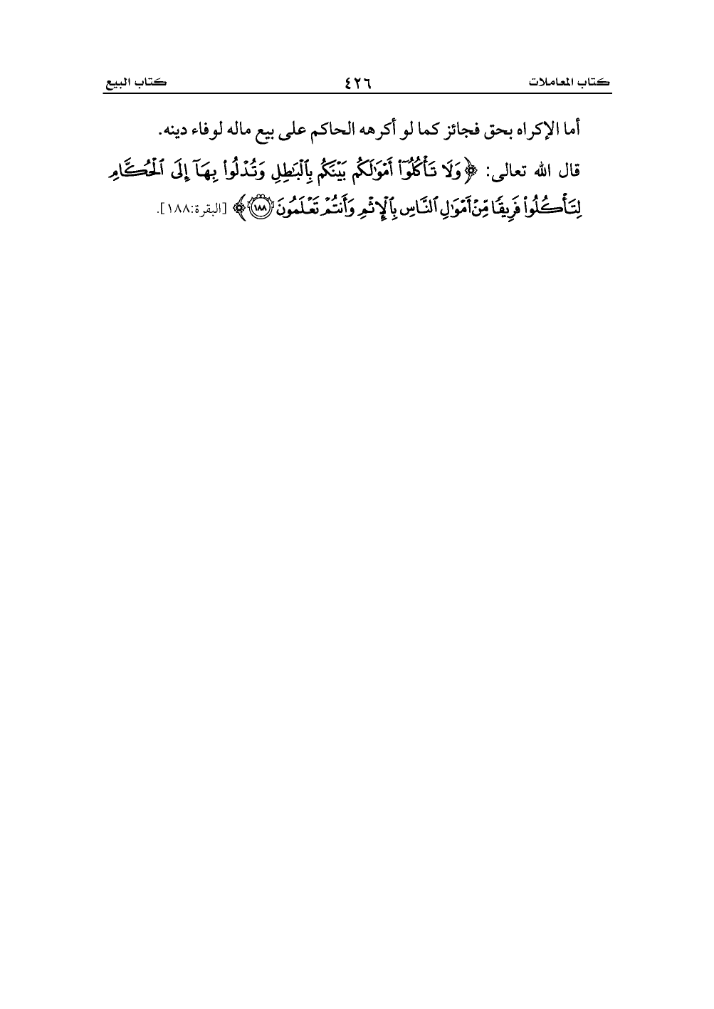 أما الإكراه بحق فجائز كما لو أكرهه الحاكم على بيع ماله لوفاء دينه.