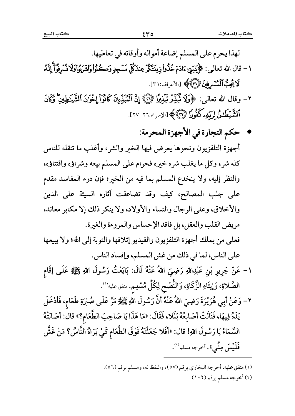 1 - قال الله تعالى: {يَابَنِي آدَمَ خُذُوا زِينَتَكُمْ عِنْدَ كُلِّ مَسْجِدٍ وَكُلُوا وَاشْرَبُوا وَلَا تُسْرِفُوا إِنَّهُ لَا يُحِبُّ الْمُسْرِفِينَ (31)} [الأعراف:31].
