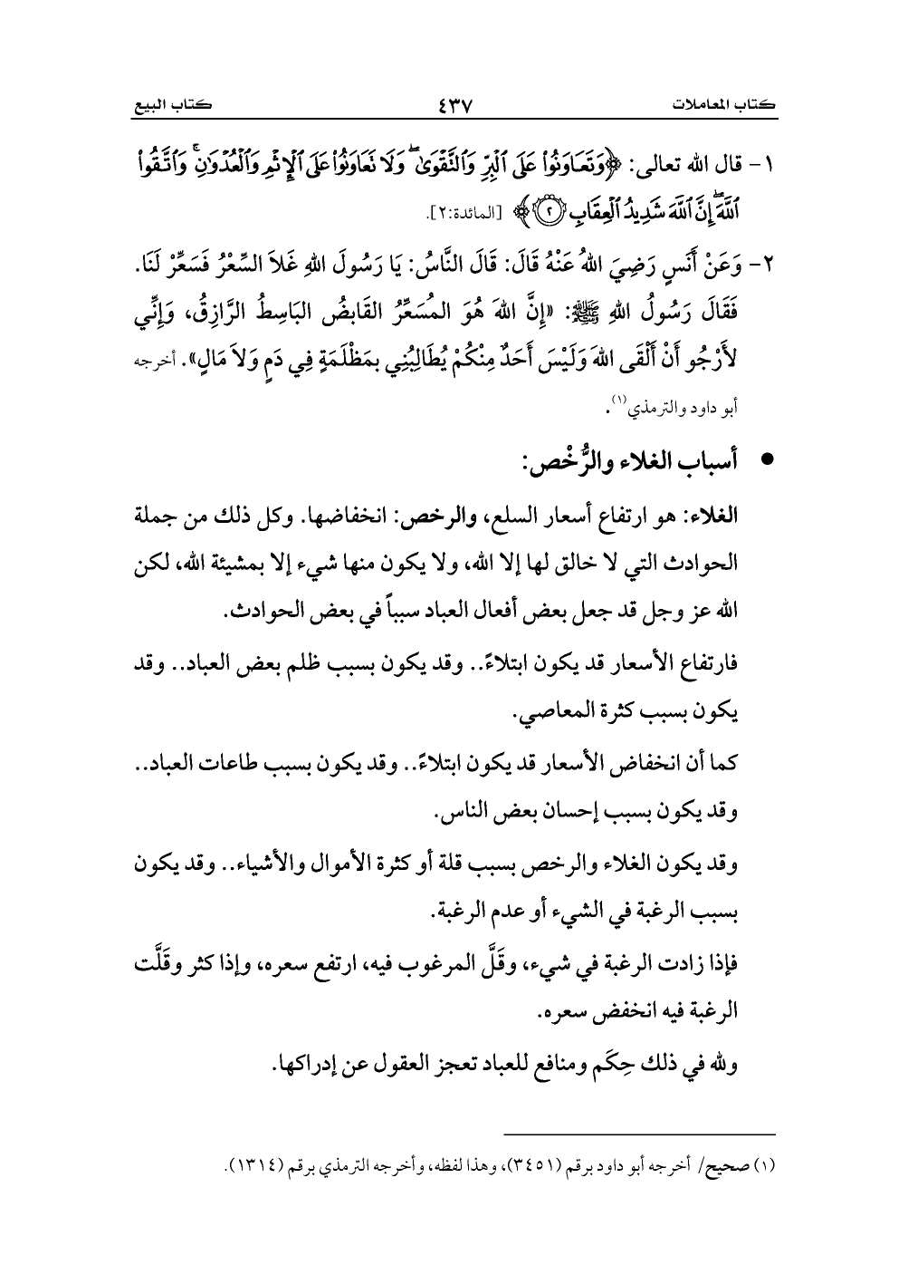 2 - وَعَنْ أَنَسٍ رَضِيَ اللهُ عَنْهُ قَالَ: قَالَ النَّاسُ: يَا رَسُولَ اللهِ غَلاَ السِّعْرُ فَسَعِّرْ لَنَا. فَقَالَ رَسُولُ اللهِ - صلى الله عليه وسلم -: «إِنَّ اللهَ هُوَ المُسَعِّرُ القَابضُ البَاسِطُ الرَّازِقُ، وَإِنِّي لأَرْجُو أَنْ أَلْقَى اللهَ وَلَيْسَ أَحَدٌ مِنْكُمْ يُطَالِبُنِي بمَظْلَمَةٍ فِي دَمٍ وَلاَ مَالٍ». أخرجه أبو داود والترمذي (¬1).