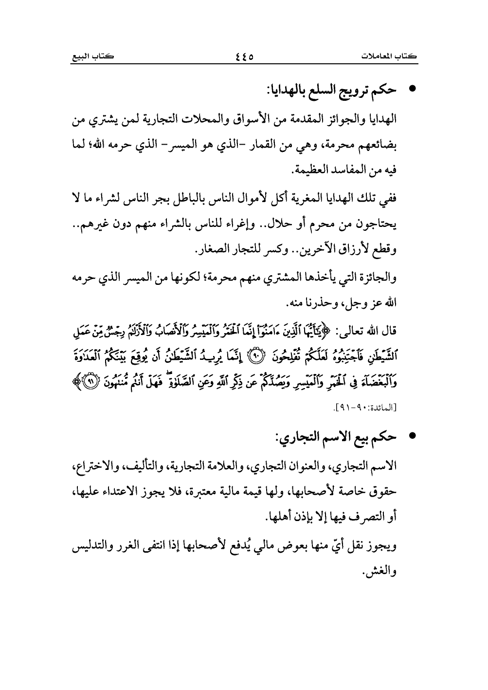 قال الله تعالى: {يَاأَيُّهَا الَّذِينَ آمَنُوا إِنَّمَا الْخَمْرُ وَالْمَيْسِرُ وَالْأَنْصَابُ وَالْأَزْلَامُ رِجْسٌ مِنْ عَمَلِ الشَّيْطَانِ فَاجْتَنِبُوهُ لَعَلَّكُمْ تُفْلِحُونَ (90) إِنَّمَا يُرِيدُ الشَّيْطَانُ أَنْ يُوقِعَ بَيْنَكُمُ الْعَدَاوَةَ وَالْبَغْضَاءَ فِي الْخَمْرِ وَالْمَيْسِرِ وَيَصُدَّكُمْ عَنْ ذِكْرِ اللَّهِ وَعَنِ الصَّلَاةِ فَهَلْ أَنْتُمْ مُنْتَهُونَ (91)} [المائدة:90 - 91].