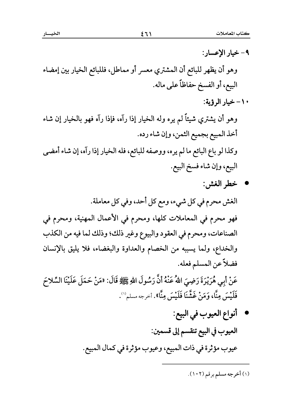وهو أن يشتري شيئاً لم يره وله الخيار إذا رآه، فإذا رآه فهو بالخيار إن شاء أخذ المبيع بجميع الثمن، وإن شاء رده.