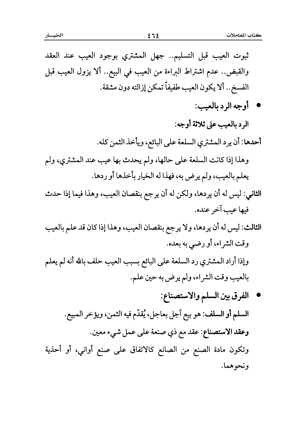 وهذا إذا كانت السلعة على حالها، ولم يحدث بها عيب عند المشتري، ولم يعلم بالعيب، ولم يرض به، فهذا له الخيار بأخذها أو ردها.