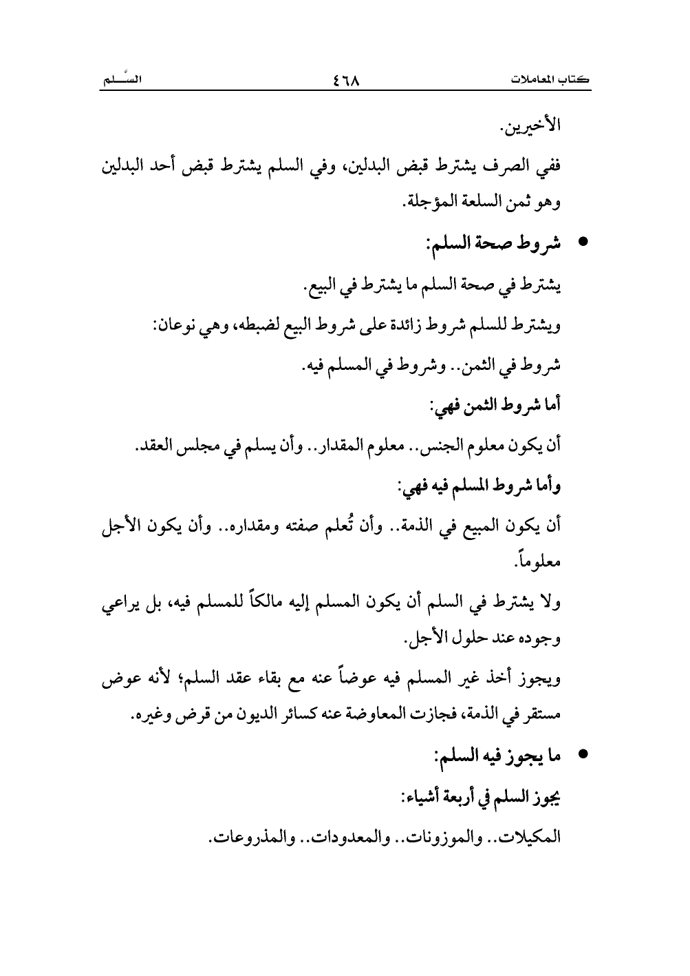 أن يكون معلوم الجنس .. معلوم المقدار .. وأن يسلم في مجلس العقد.
