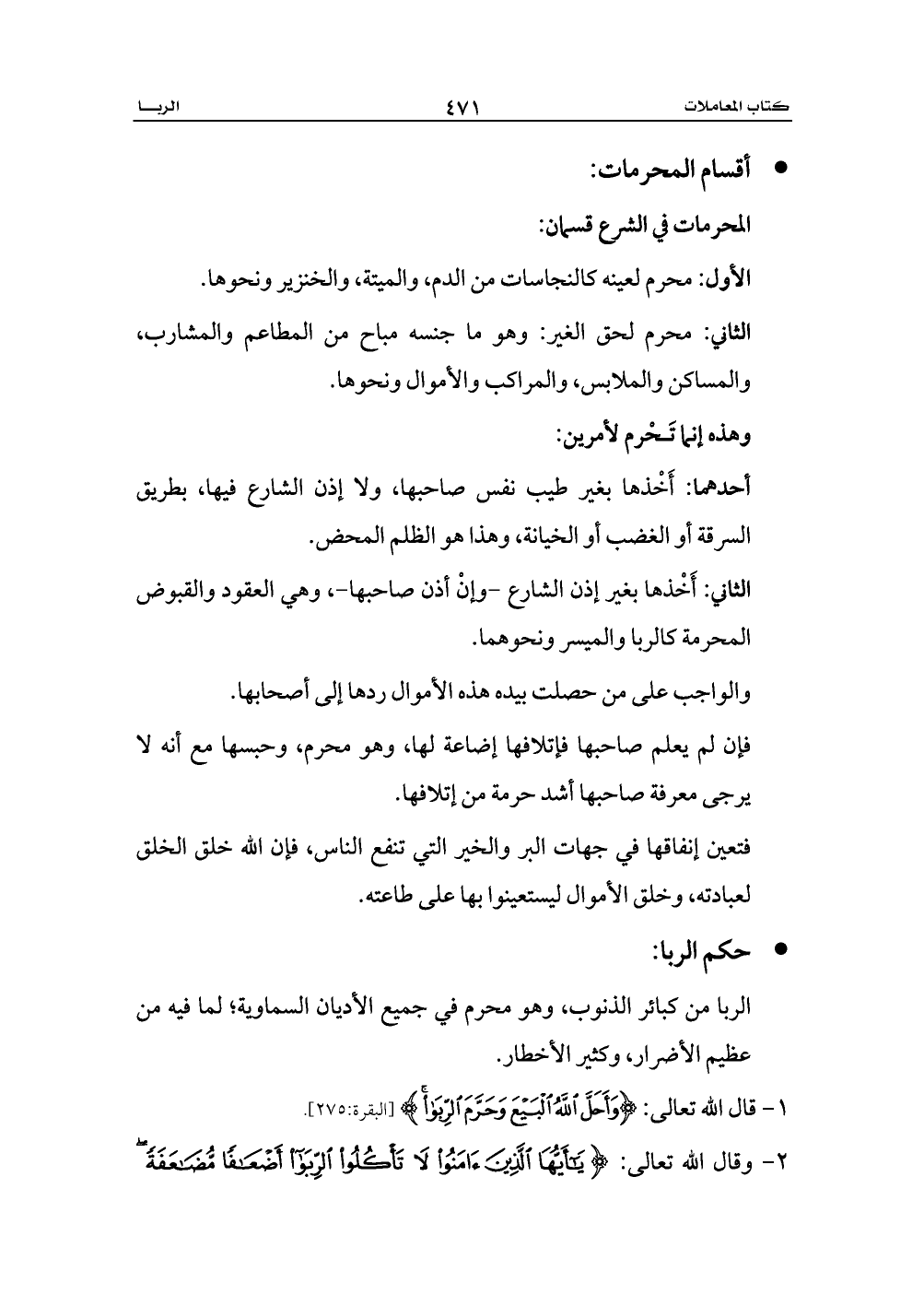 1 - قال الله تعالى: {وَأَحَلَّ اللَّهُ الْبَيْعَ وَحَرَّمَ الرِّبَا} [البقرة:275].
