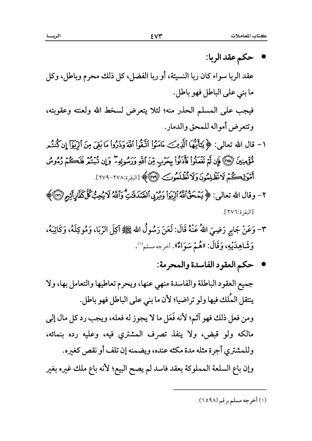 1 - قال الله تعالى: {يَاأَيُّهَا الَّذِينَ آمَنُوا اتَّقُوا اللَّهَ وَذَرُوا مَا بَقِيَ مِنَ الرِّبَا إِنْ كُنْتُمْ مُؤْمِنِينَ (278) فَإِنْ لَمْ تَفْعَلُوا فَأْذَنُوا بِحَرْبٍ مِنَ اللَّهِ وَرَسُولِهِ وَإِنْ تُبْتُمْ فَلَكُمْ رُءُوسُ أَمْوَالِكُمْ لَا تَظْلِمُونَ وَلَا تُظْلَمُونَ (279)} [البقرة:278 - 279].