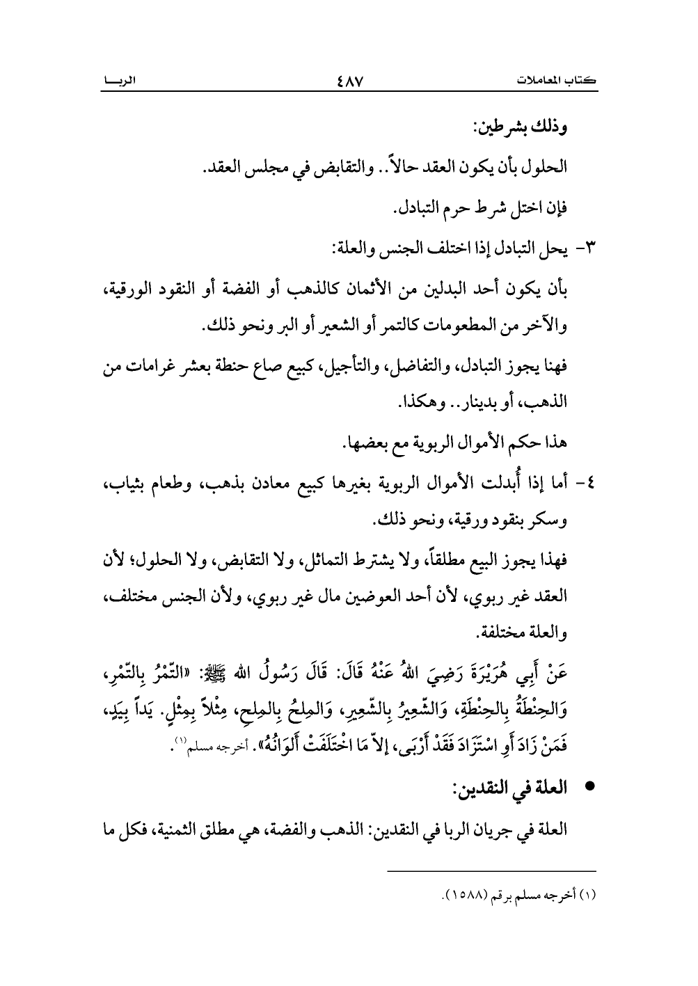 3 - يحل التبادل إذا اختلف الجنس والعلة: