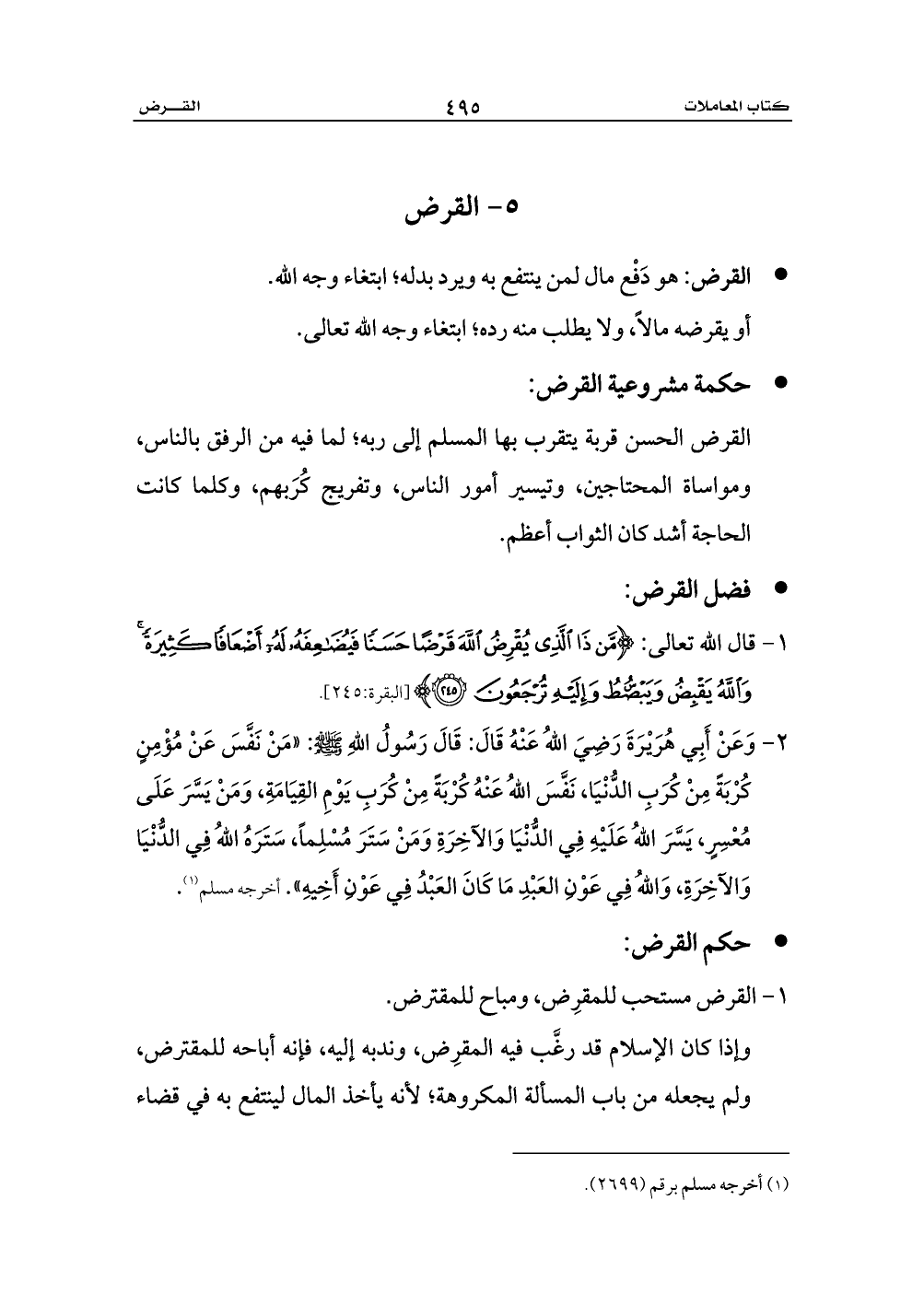 1 - القرض مستحب للمقرِض، ومباح للمقترض.