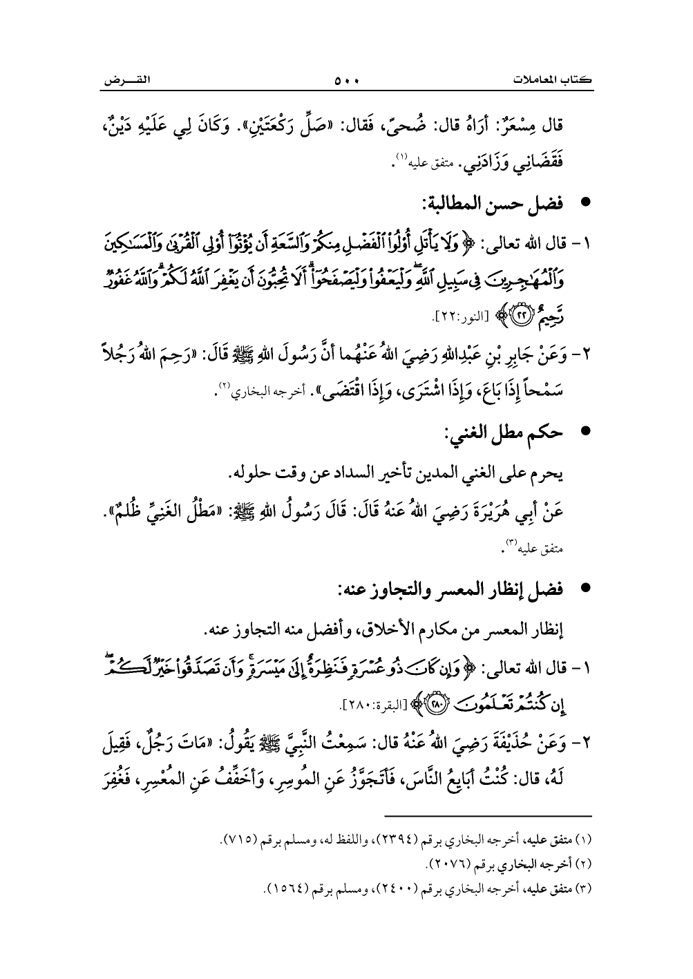 1 - قال الله تعالى: {وَإِنْ كَانَ ذُو عُسْرَةٍ فَنَظِرَةٌ إِلَى مَيْسَرَةٍ وَأَنْ تَصَدَّقُوا خَيْرٌ لَكُمْ إِنْ كُنْتُمْ تَعْلَمُونَ (280)} [البقرة:280].