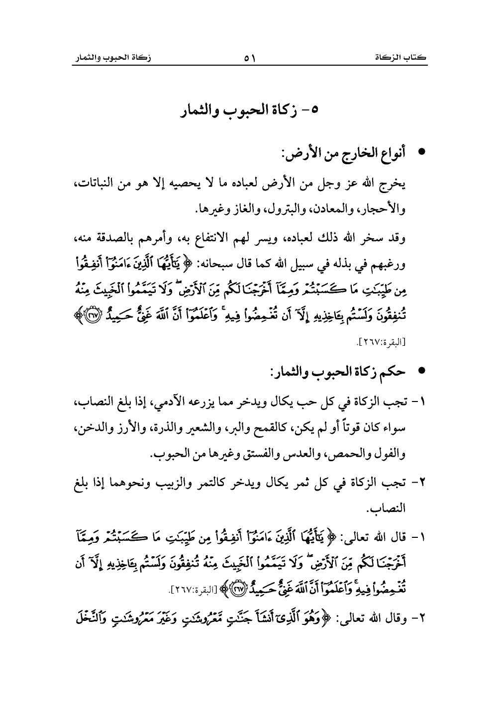 وقد سخر الله ذلك لعباده، ويسر لهم الانتفاع به، وأمرهم بالصدقة منه، ورغبهم في بذله في سبيل الله كما قال سبحانه: {يَاأَيُّهَا الَّذِينَ آمَنُوا أَنْفِقُوا مِنْ طَيِّبَاتِ مَا كَسَبْتُمْ وَمِمَّا أَخْرَجْنَا لَكُمْ مِنَ الْأَرْضِ وَلَا تَيَمَّمُوا الْخَبِيثَ مِنْهُ تُنْفِقُونَ وَلَسْتُمْ بِآخِذِيهِ إِلَّا أَنْ تُغْمِضُوا فِيهِ وَاعْلَمُوا أَنَّ اللَّهَ غَنِيٌّ حَمِيدٌ (267)} [البقرة:267].