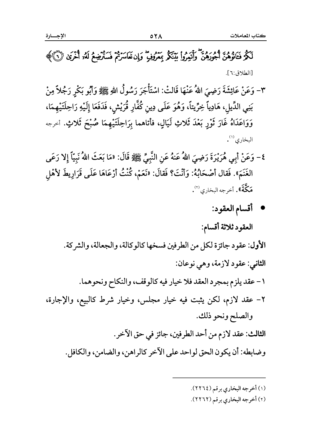 3 - وَعَنْ عَائِشَةَ رَضِيَ اللهُ عَنْهَا قَالتْ: اسْتَأْجَرَ رَسُولُ اللهِ - صلى الله عليه وسلم - وَأبُو بَكْرٍ رَجُلاً مِنْ بَنِي الدِّيلِ، هَادِياً خِرِّيتاً، وَهُوَ عَلَى دِينِ كُفَّارِ قُرَيْشٍ، فَدَفَعَا إِلَيْهِ رَاحِلَتَيْهِمَا، وَوَاعَدَاهُ غَارَ ثَوْرٍ بَعْدَ ثَلاثِ لَيَالٍ، فأتاهما بِرَاحِلَتَيْهِمَا صُبْحَ ثَلاثٍ. أخرجه البخاري (¬1).