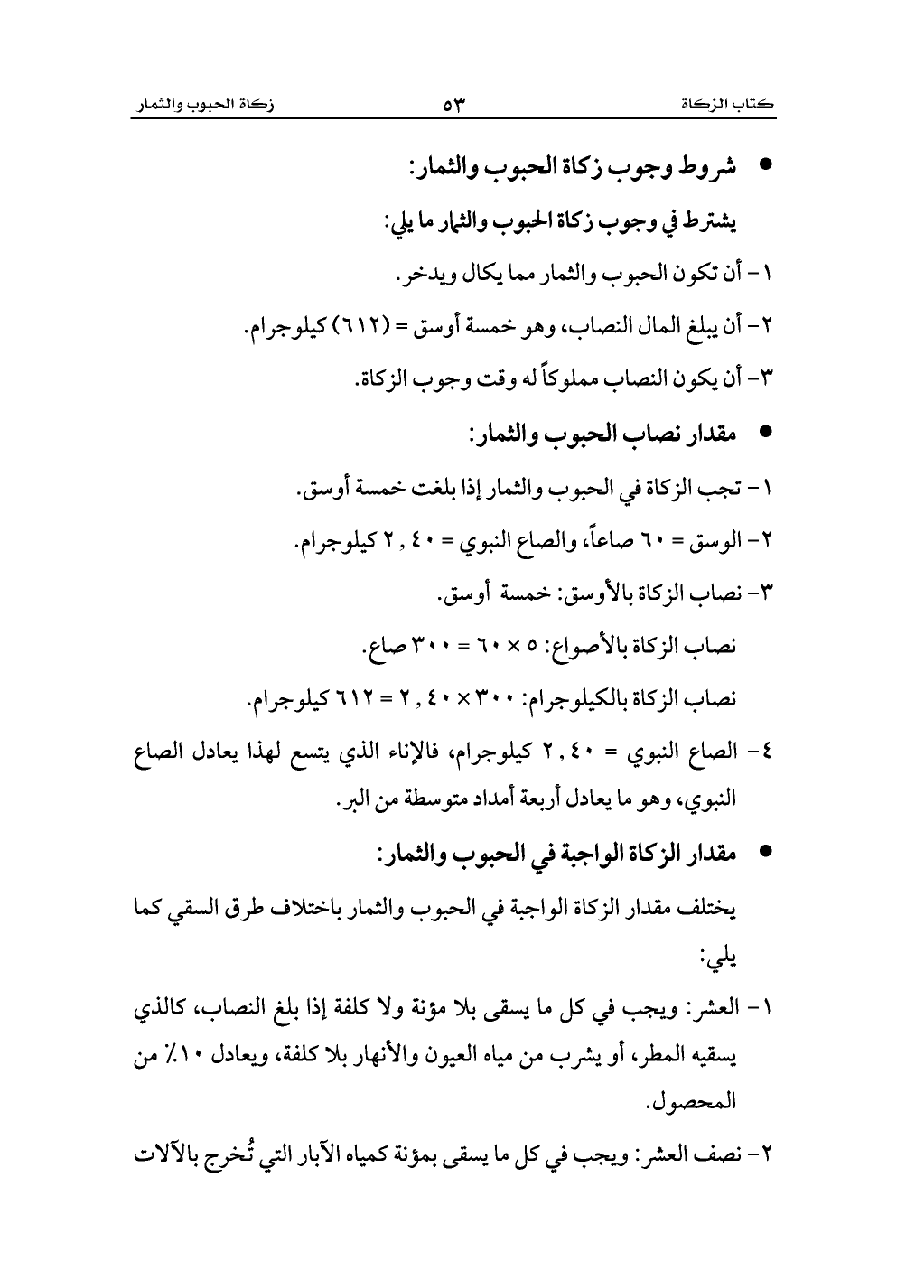 - مقدار الزكاة الواجبة في الحبوب والثمار: