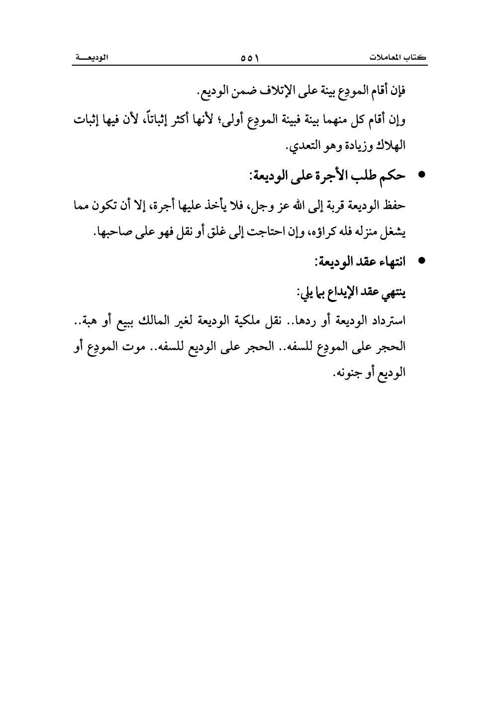 استرداد الوديعة أو ردها .. نقل ملكية الوديعة لغير المالك ببيع أو هبة .. الحجر على المودِع للسفه .. الحجر على الوديع للسفه .. موت المودِع أو الوديع أو جنونه.
