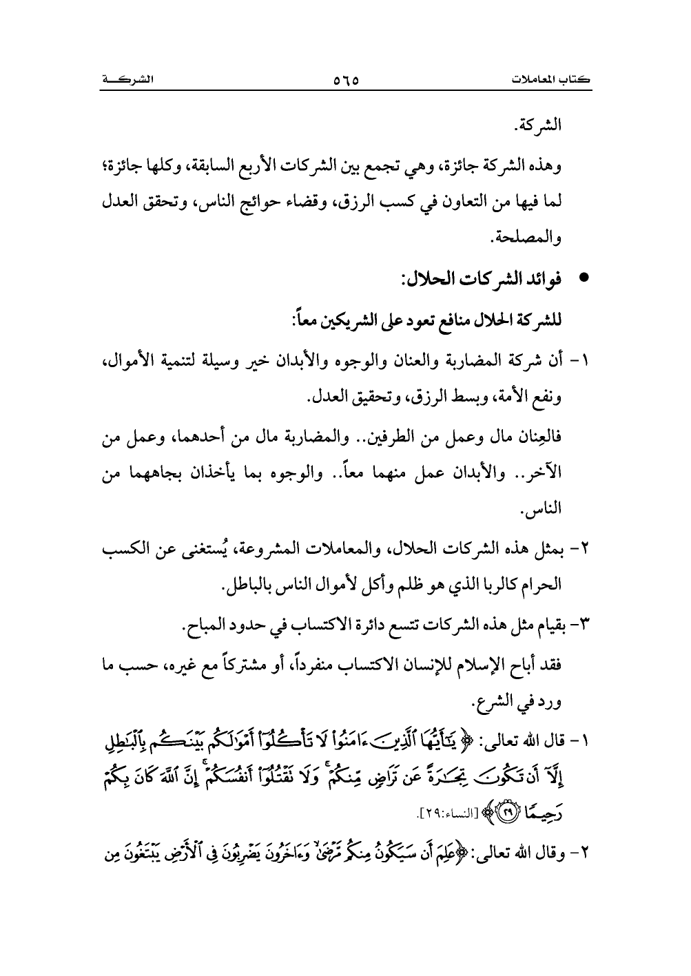 للشركة الحلال منافع تعود على الشريكين معاً: