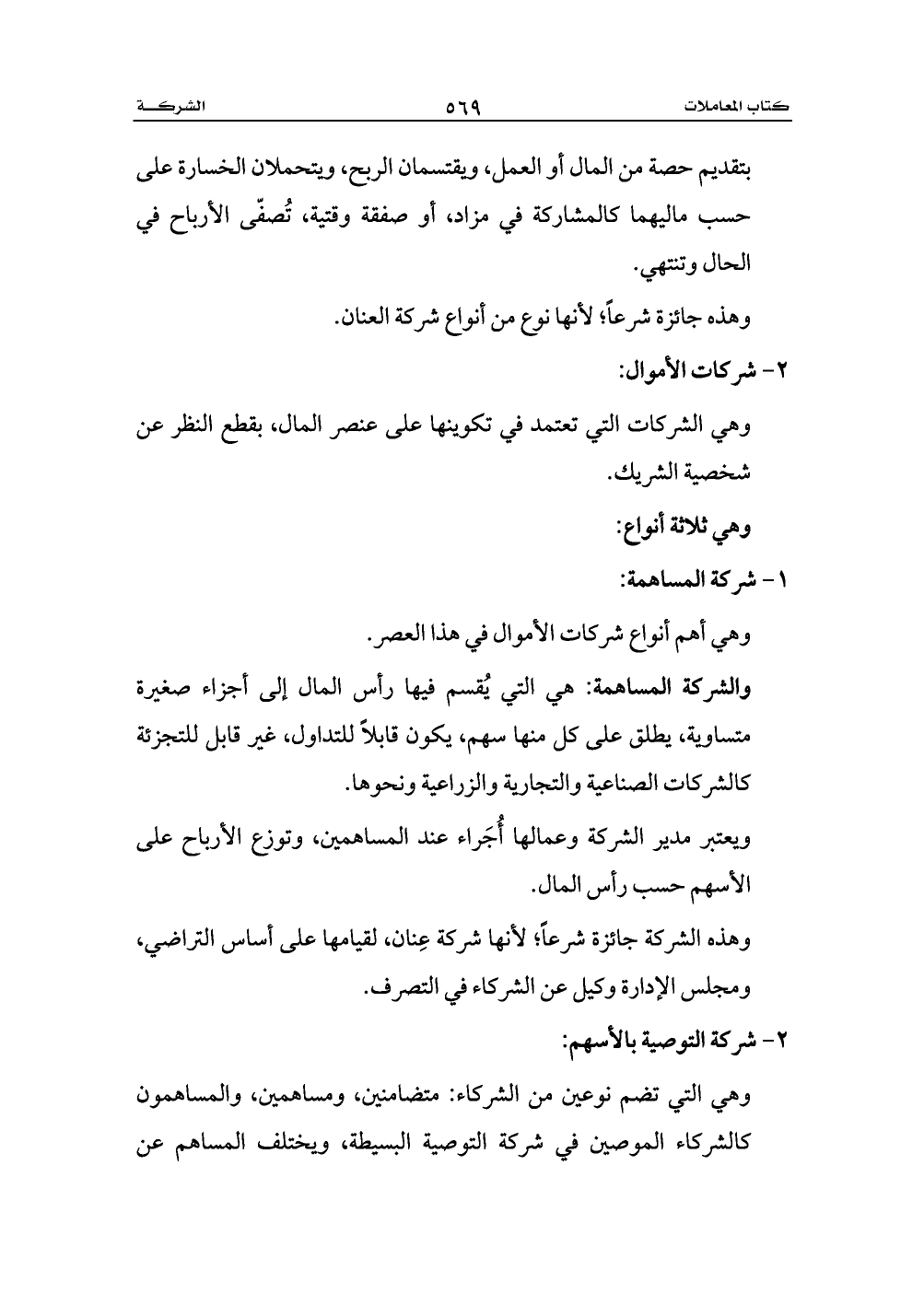 والشركة المساهمة: هي التي يُقسم فيها رأس المال إلى أجزاء صغيرة متساوية، يطلق على كل منها سهم، يكون قابلاً للتداول، غير قابل للتجزئة كالشركات الصناعية والتجارية والزراعية ونحوها.