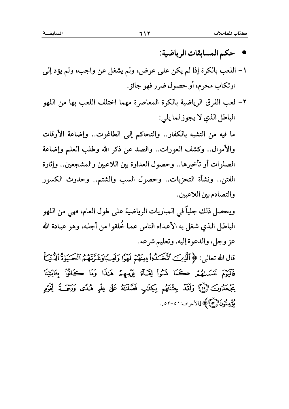 2 - لعب الفرق الرياضية بالكرة المعاصرة مهما اختلف اللعب بها من اللهو الباطل الذي لا يجوز لما يلي: