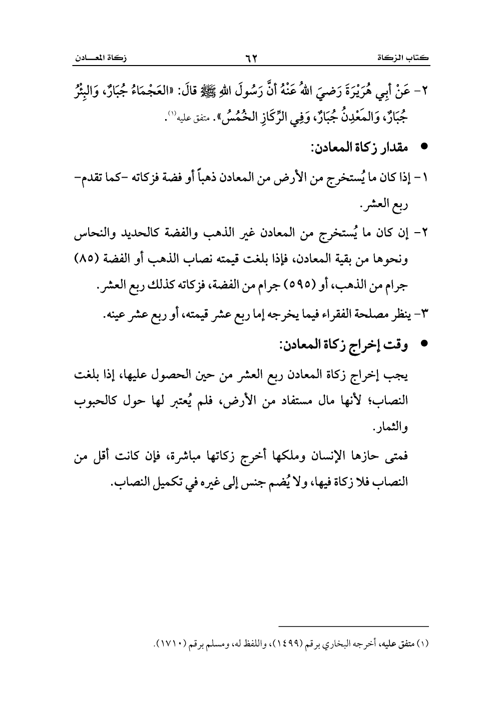 2 - عَنْ أبِي هُرَيْرَةَ رَضيَ اللهُ عَنْهُ أنَّ رَسُولَ اللهِ - صلى الله عليه وسلم - قالَ: «العَجْمَاءُ جُبَارٌ، وَالبِئْرُ جُبَارٌ، وَالمَعْدِنُ جُبَارٌ، وَفِي الرِّكَازِ الخُمُسُ». متفق عليه (¬1).