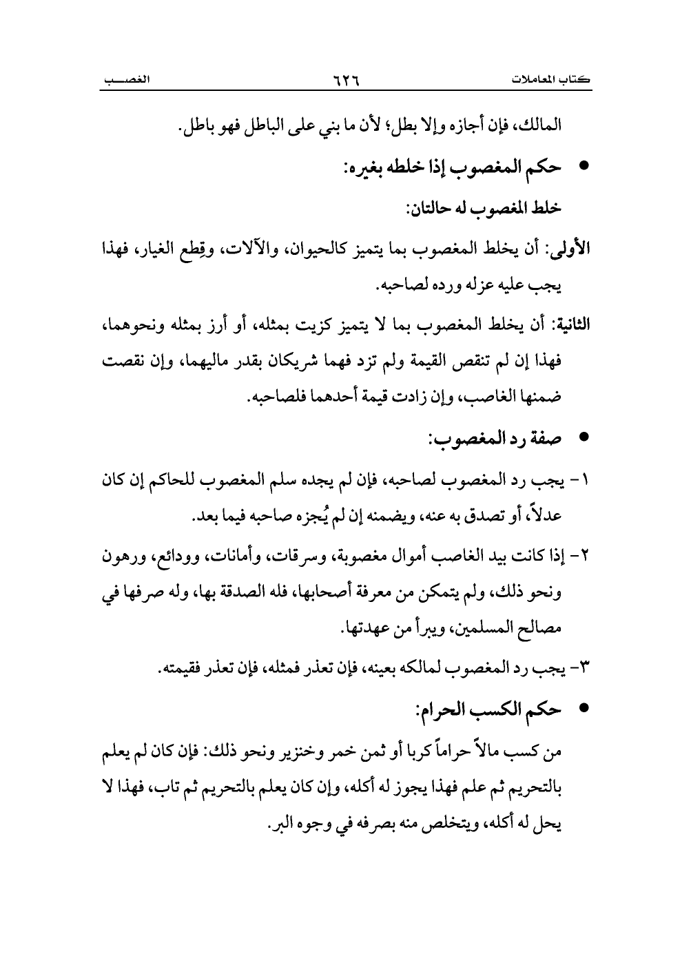3 - يجب رد المغصوب لمالكه بعينه، فإن تعذر فمثله، فإن تعذر فقيمته.