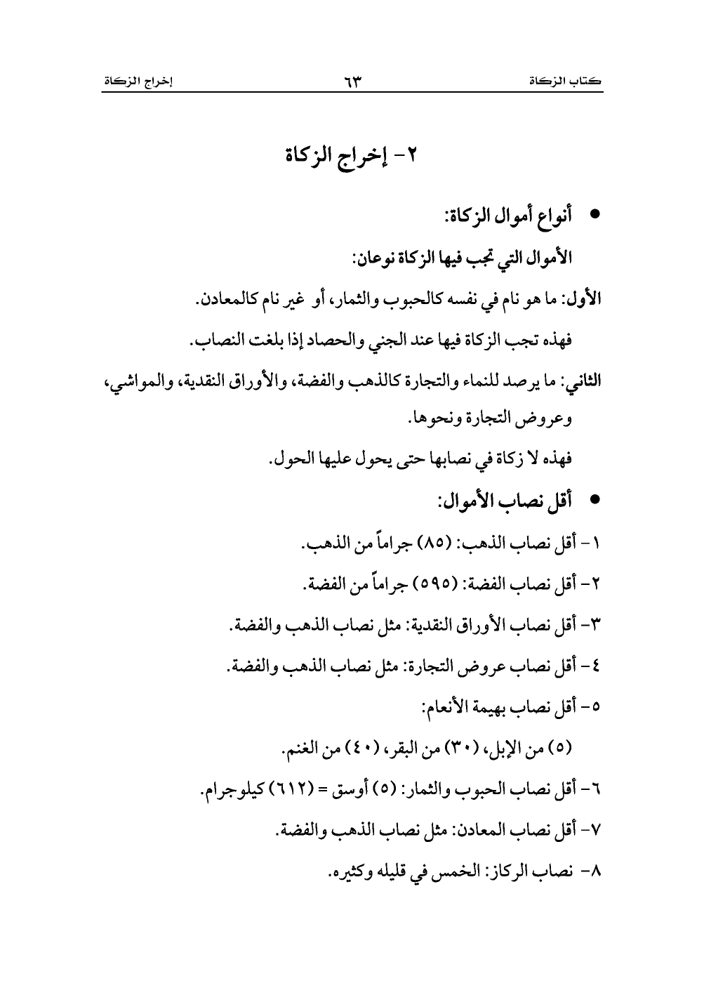 6 - أقل نصاب الحبوب والثمار: (5) أوسق = (612) كيلوجرام.