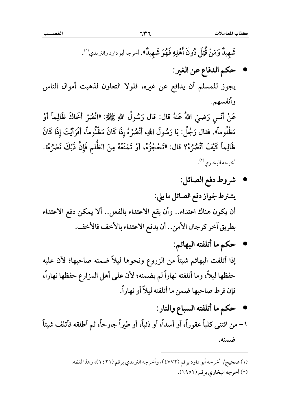 يجوز للمسلم أن يدافع عن غيره، فلولا التعاون لذهبت أموال الناس وأنفسهم.