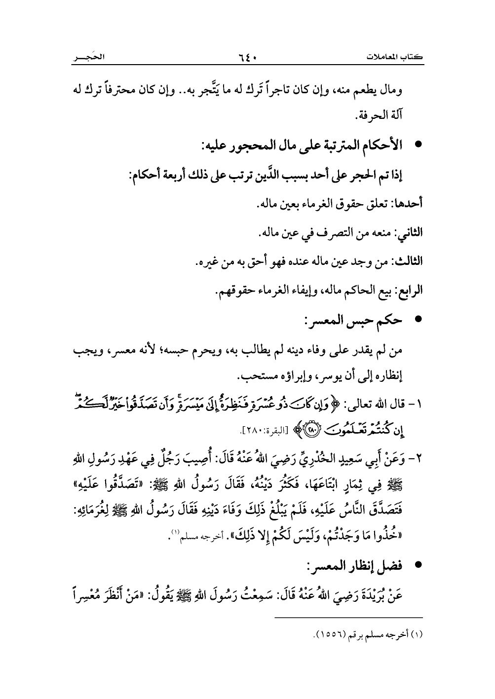 إذا تم الحجر على أحد بسبب الدَّين ترتب على ذلك أربعة أحكام:
