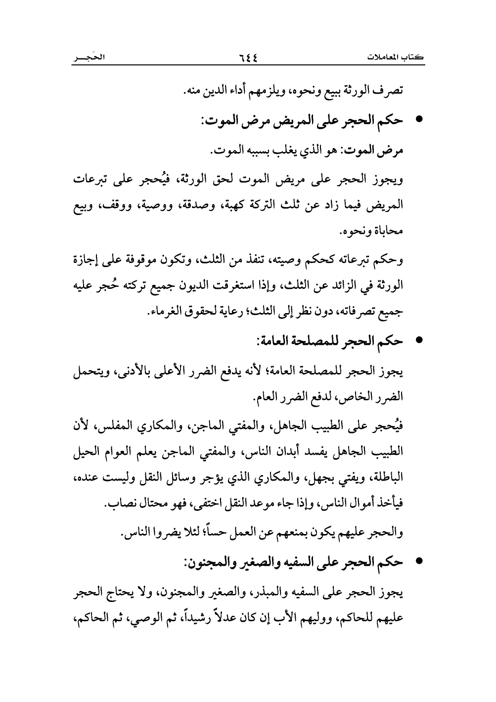- حكم الحجر على المريض مرض الموت: