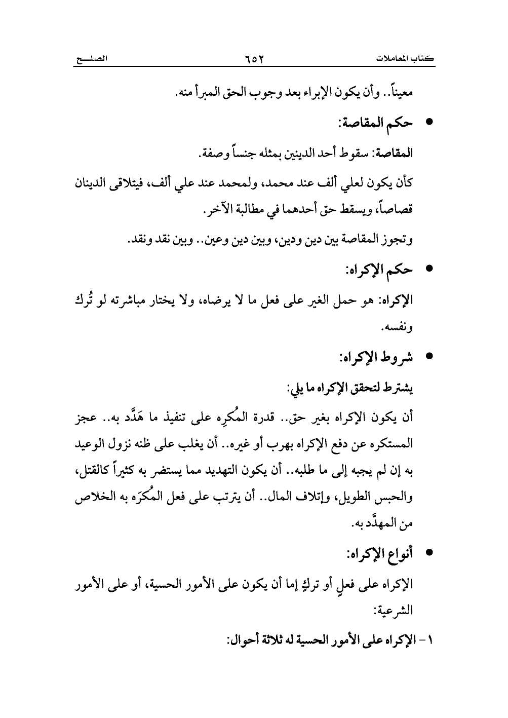 وتجوز المقاصة بين دين ودين، وبين دين وعين .. وبين نقد ونقد.