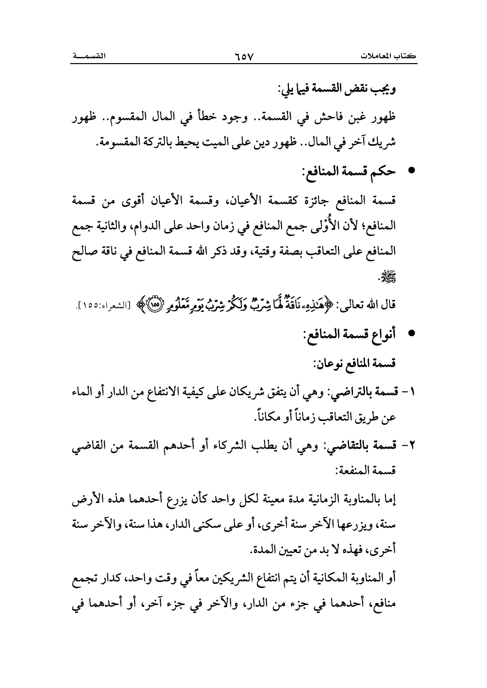 2 - قسمة بالتقاضي: وهي أن يطلب الشركاء أو أحدهم القسمة من القاضي قسمة المنفعة: