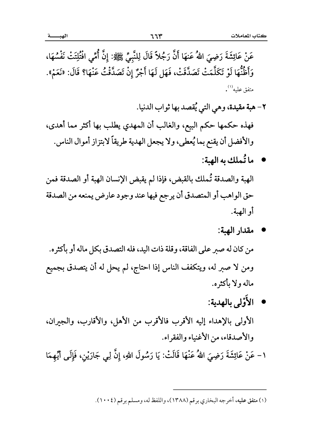 2 - هبة مقيدة، وهي التي يُقصد بها ثواب الدنيا.