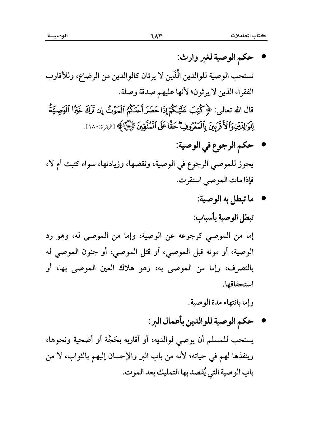 قال الله تعالى: {كُتِبَ عَلَيْكُمْ إِذَا حَضَرَ أَحَدَكُمُ الْمَوْتُ إِنْ تَرَكَ خَيْرًا الْوَصِيَّةُ لِلْوَالِدَيْنِ وَالْأَقْرَبِينَ بِالْمَعْرُوفِ حَقًّا عَلَى الْمُتَّقِينَ (180)} [البقرة:180].