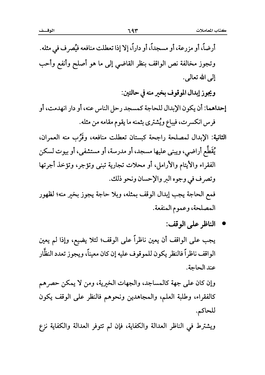 ويجوز إبدال الموقوف بخير منه في حالتين: