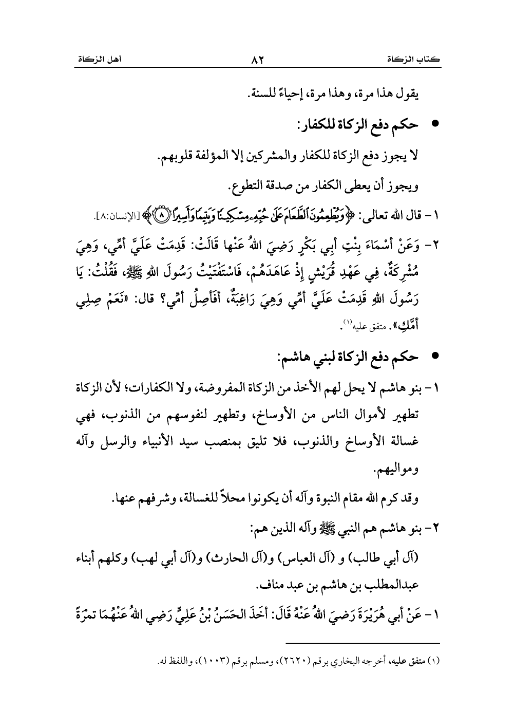 - حكم دفع الزكاة لبني هاشم: