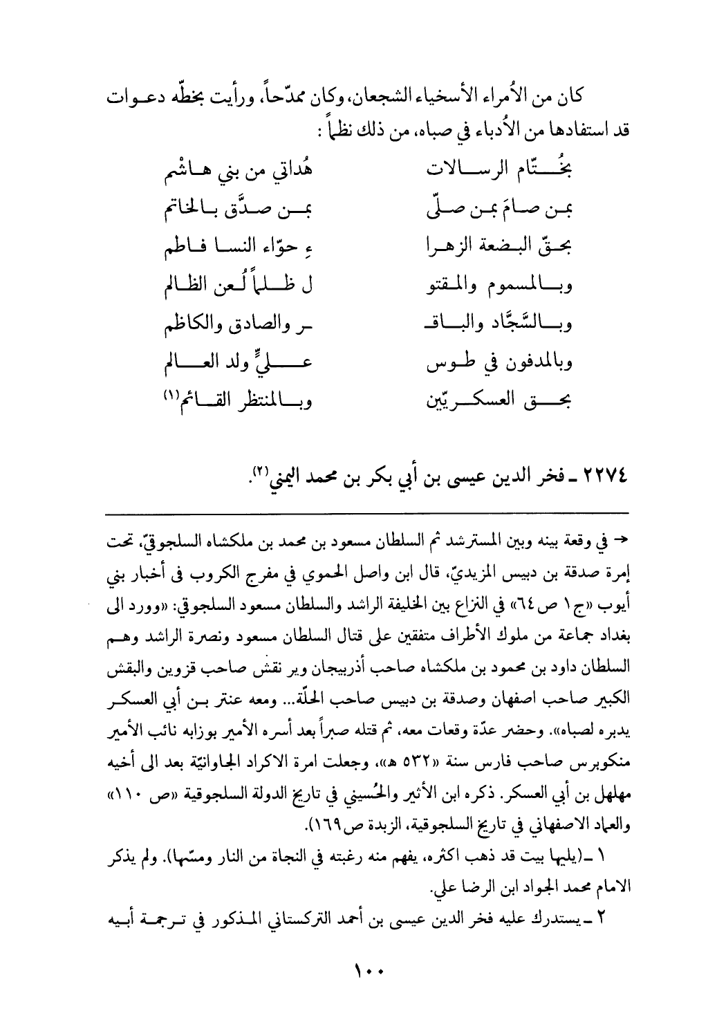 (¬2) يستدرك عليه فخر الدين عيسى بن أحمد التركستاني المذكور في ترجمة أبيه