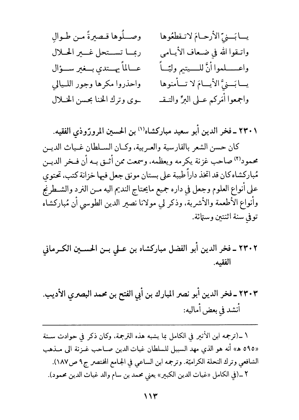 2302 - فخر الدين أبو الفضل مباركشاه بن علي بن الحسين الكرماني