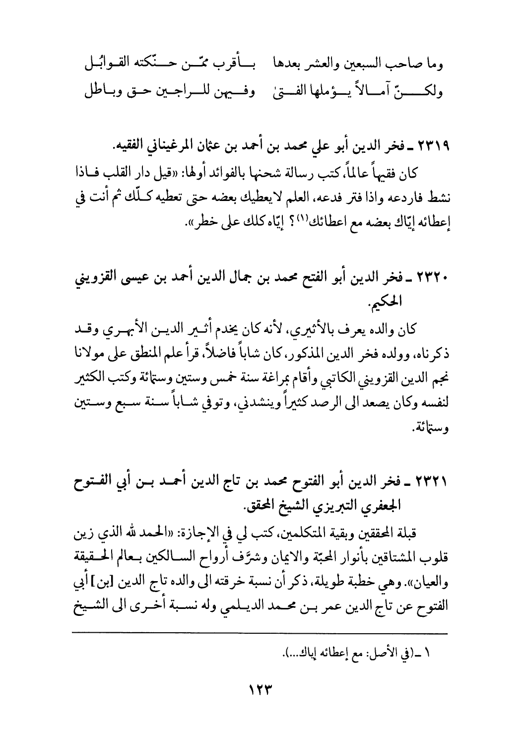 2319 - فخر الدين أبو علي محمد بن أحمد بن عثمان المرغيناني الفقيه.