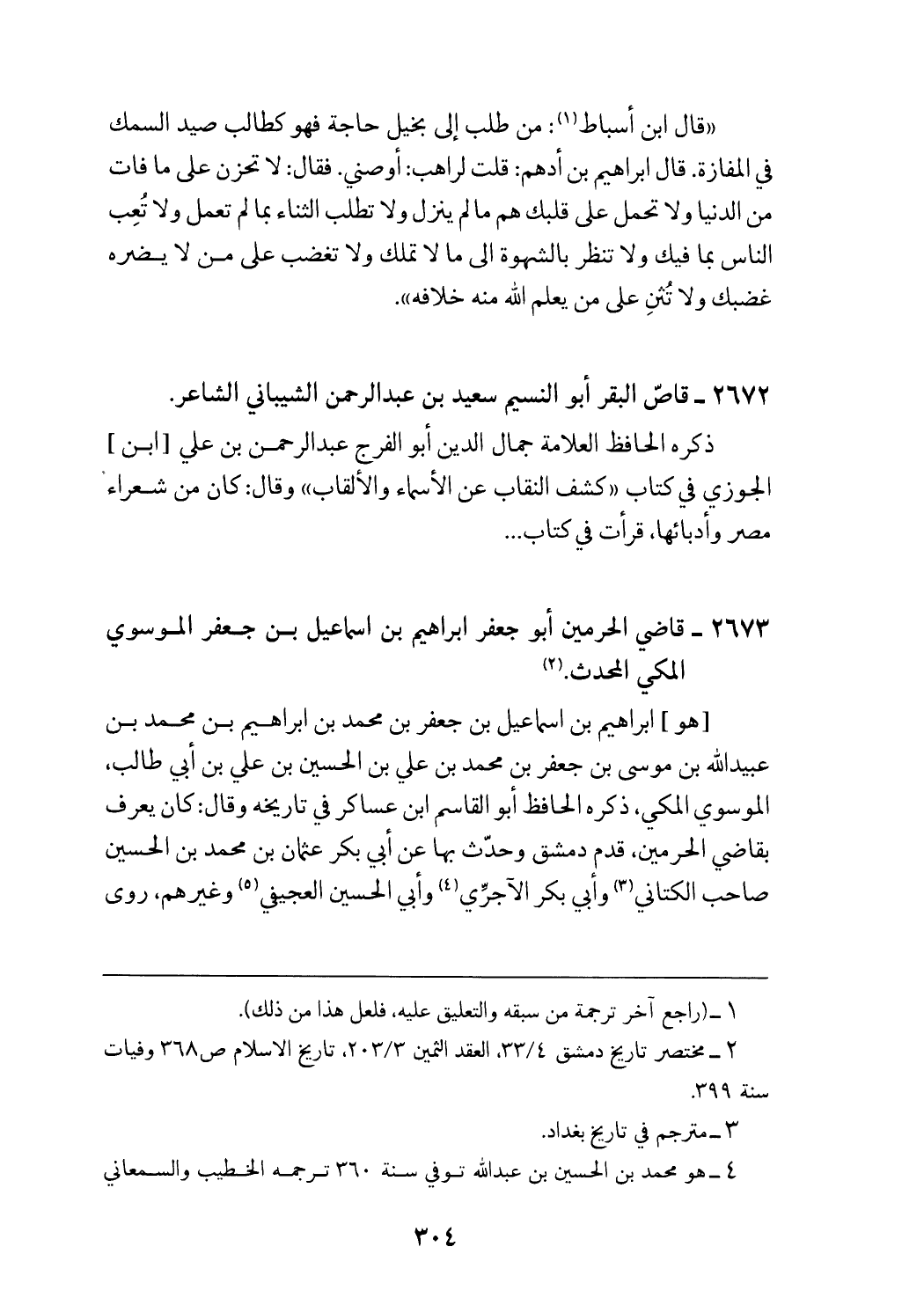 (¬2) مختصر تاريخ دمشق 33/ 4، العقد الثمين 203/ 3، تاريخ الاسلام ص 368 وفيات سنة 399.
