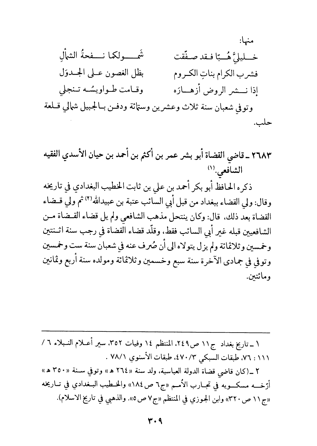(¬2) (كان قاضي قضاة الدولة العباسية، ولد سنة «264 هـ» وتوفي سنة «350 هـ» أرّخه مسكويه في تجارب الامم «ج 6 ص 184» والخطيب البغدادي في تاريخه «ج 11 ص 320» وابن الجوزي في المنتظم «ج 7 ص 5».والذهبي في تاريخ الاسلام).