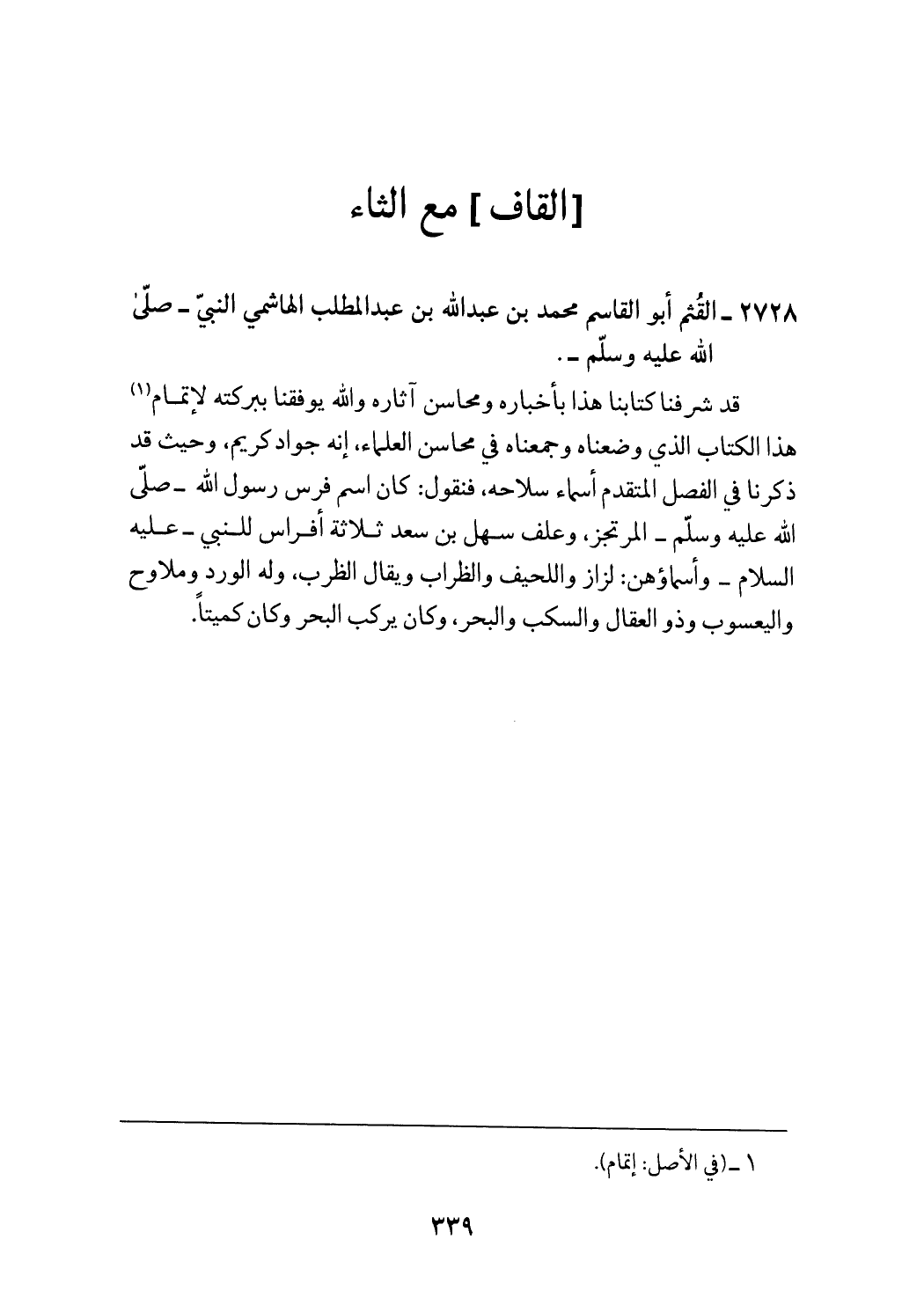 2728 - القثم أبو القاسم محمد بن عبد الله بن عبد المطلب الهاشمي النبيّ - صلّى