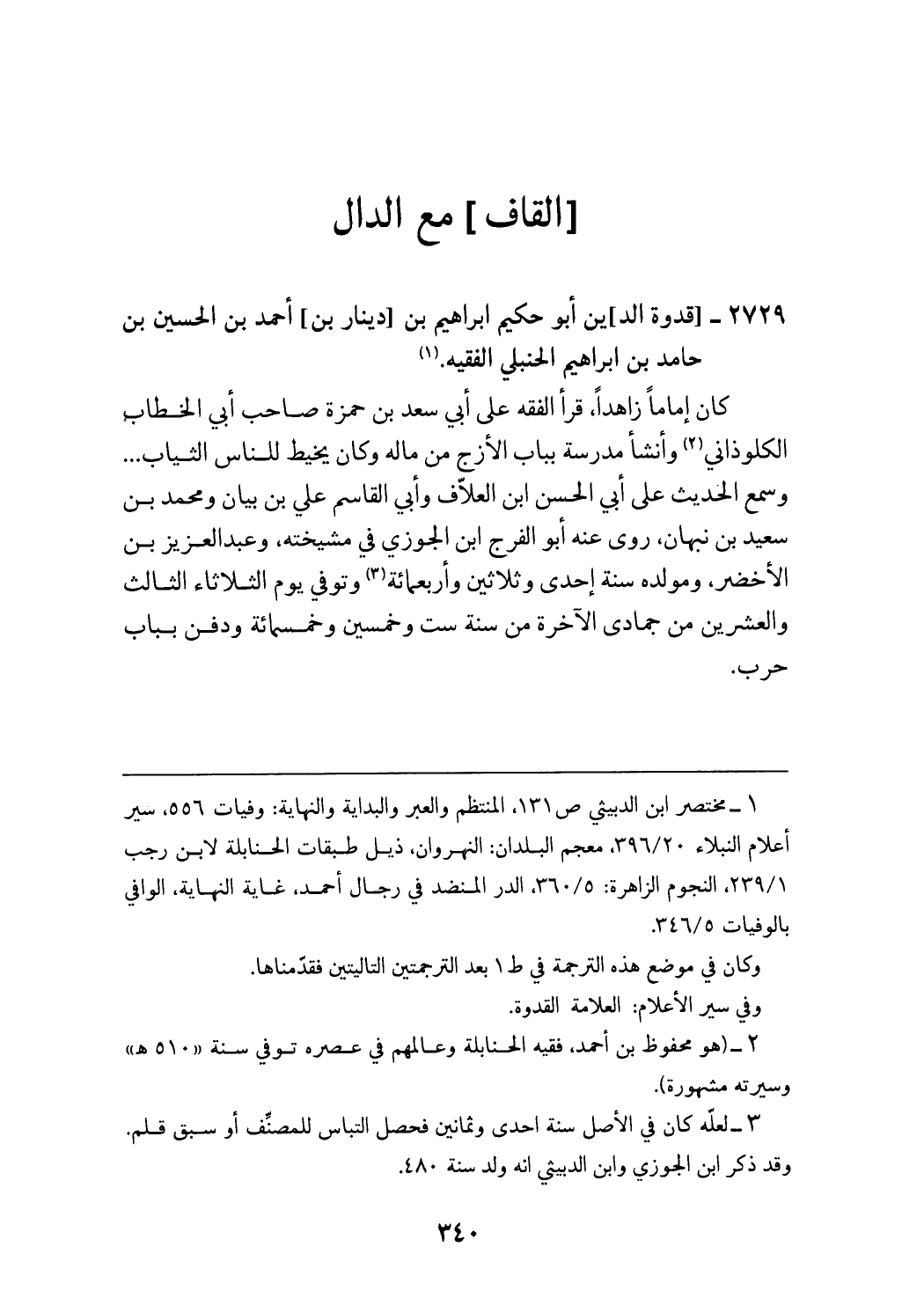 (¬2) (هو محفوظ بن أحمد، فقيه الحنابلة وعالمهم في عصره توفي سنة «510 هـ» وسيرته مشهورة).