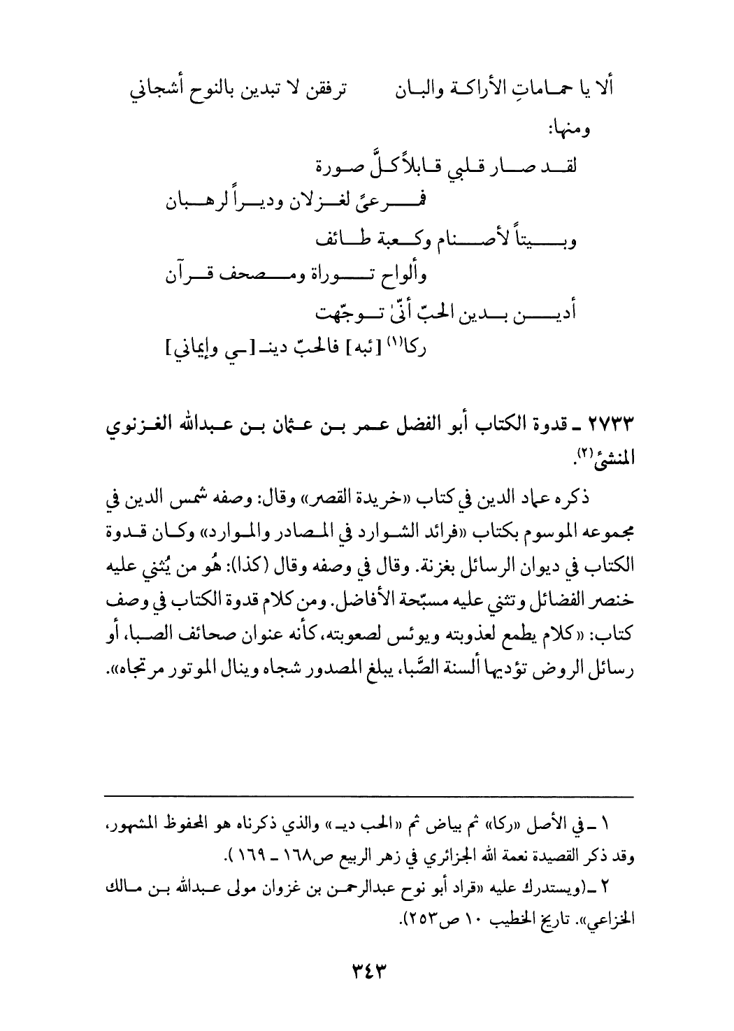 2733 - قدوة الكتاب أبو الفضل عمر بن عثمان بن عبد الله الغزنوي