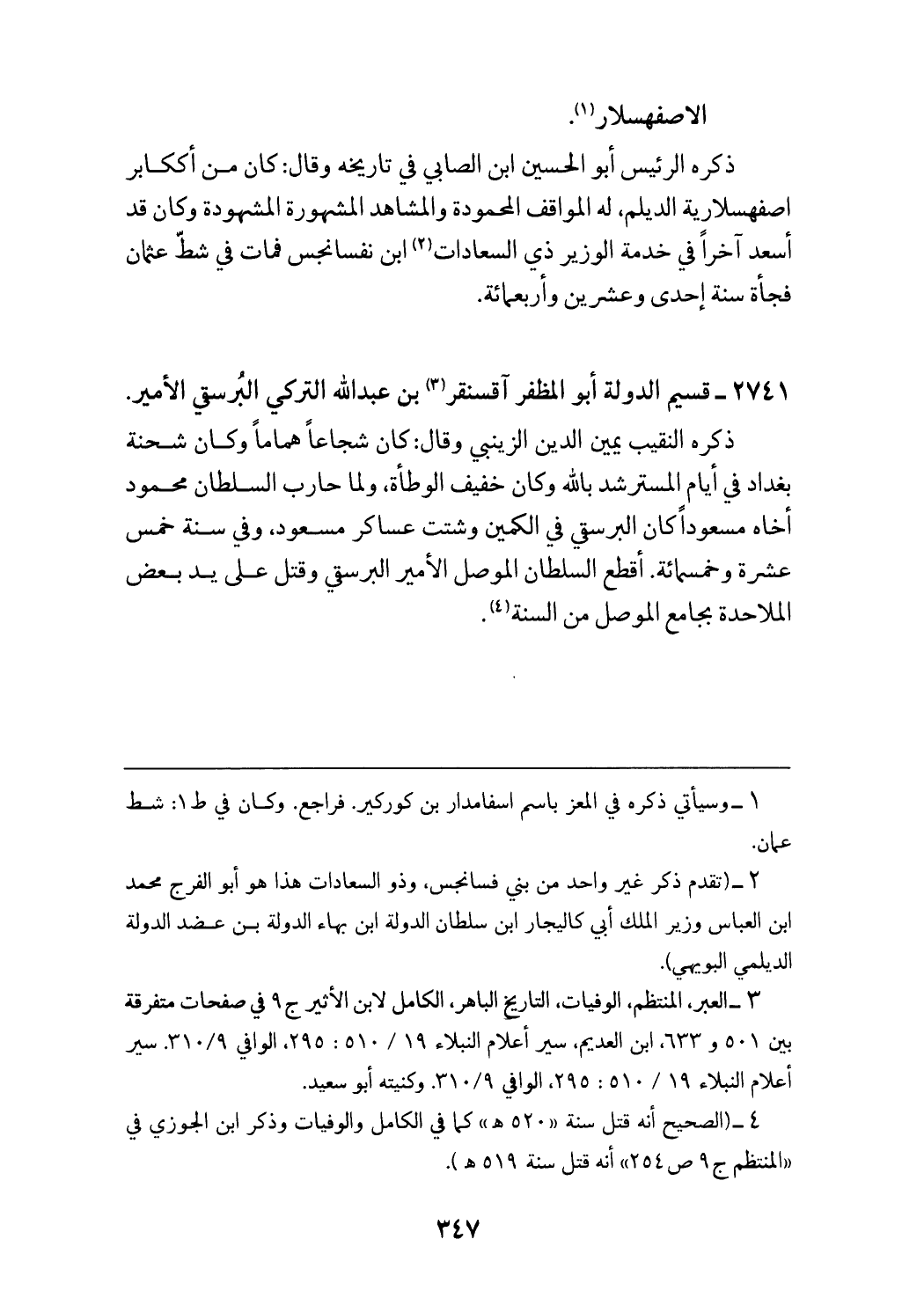 2741 - قسيم الدولة أبو المظفر آقسنقر (¬3) بن عبد الله التركي البرسقي الأمير.