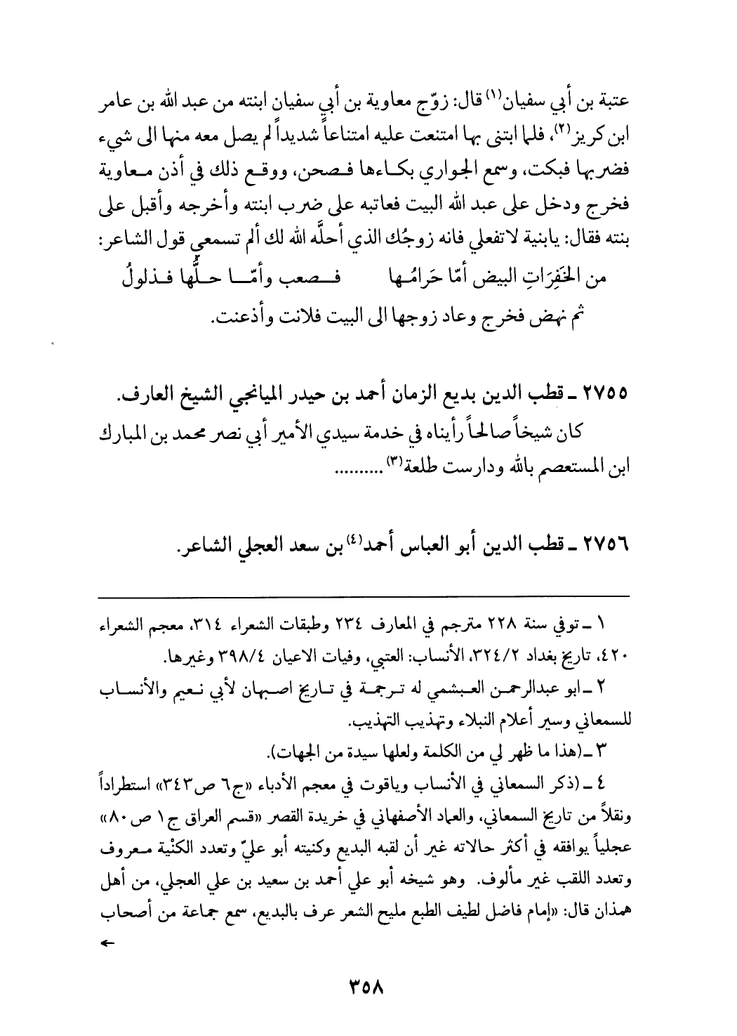 (¬4) (ذكر السمعاني في الأنساب وياقوت في معجم الأدباء «ج 6 ص 343» استطرادا ونقلا من تاريخ السمعاني، والعماد الأصفهاني في خريدة القصر «قسم العراق ج 1 ص 80» عجليا يوافقه في أكثر حالاته غير أن لقبه البديع وكنيته أبو عليّ وتعدد الكنية معروف وتعدد اللقب غير مألوف. وهو شيخه أبو علي أحمد بن سعيد بن علي العجلي، من أهل همذان قال: «إمام فاضل لطيف الطبع مليح الشعر عرف بالبديع، سمع جماعة من أصحاب -