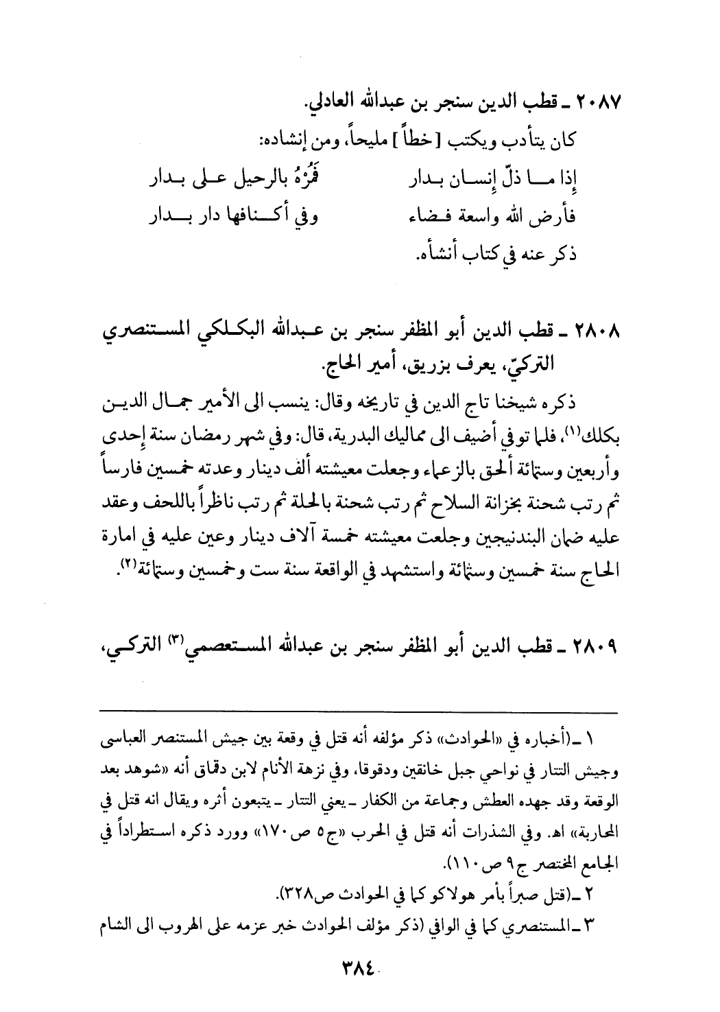 2807 - قطب الدين سنجر بن عبد الله العادلي.