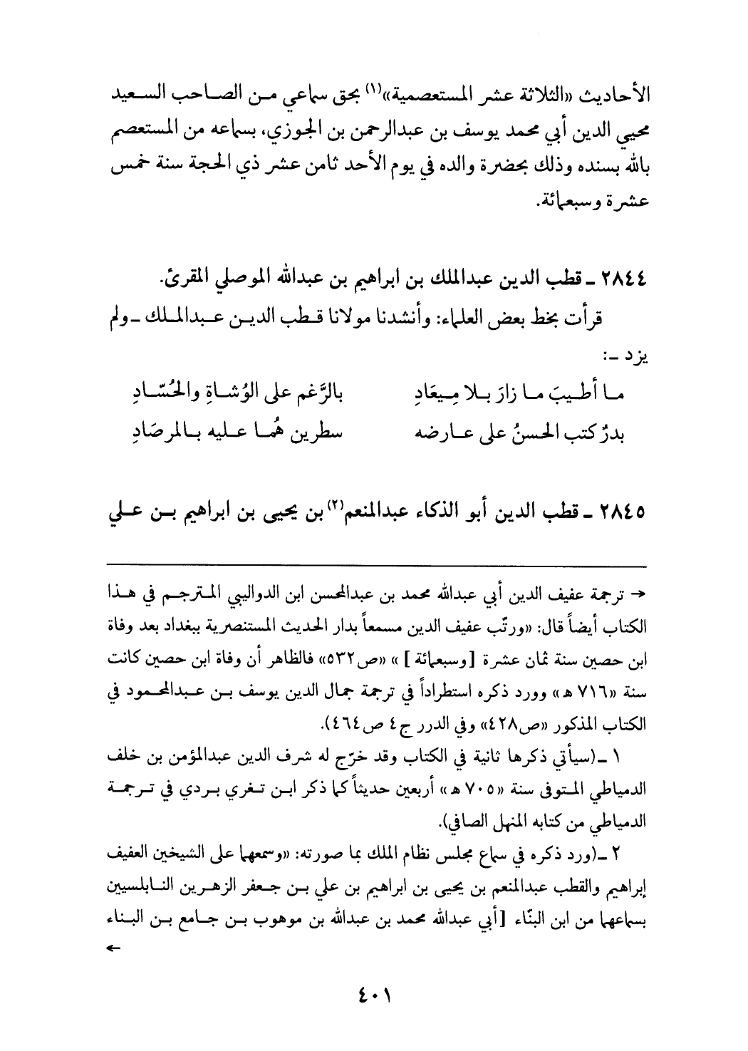 2844 - قطب الدين عبد الملك بن ابراهيم بن عبد الله الموصلي المقرئ.