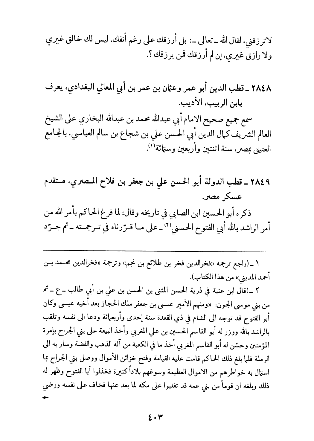 2849 - قطب الدولة أبو الحسن علي بن جعفر بن فلاح المصري، متقدم