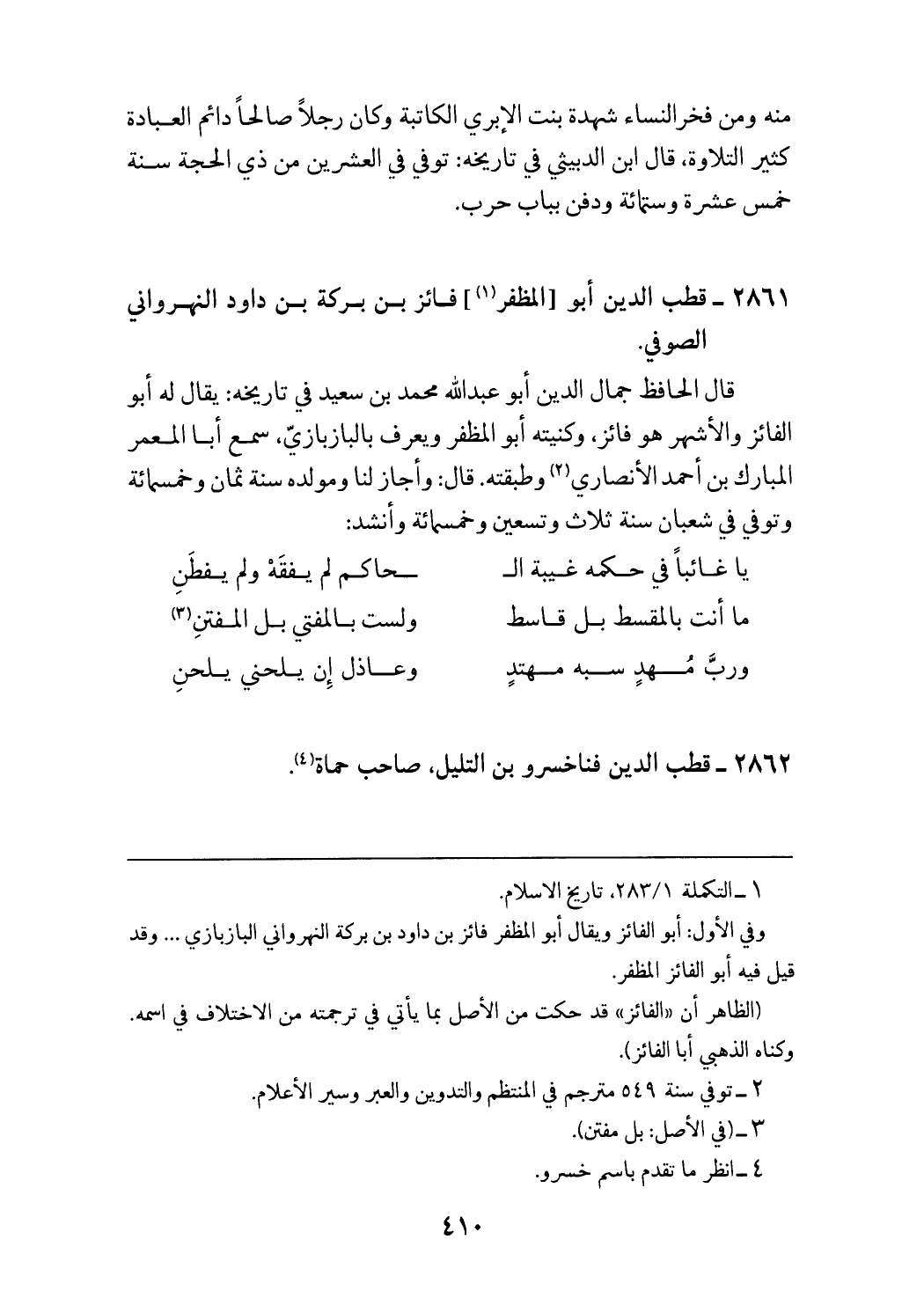 2861 - قطب الدين أبو [المظفر (¬1)] فائز بن بركة بن داود النهرواني