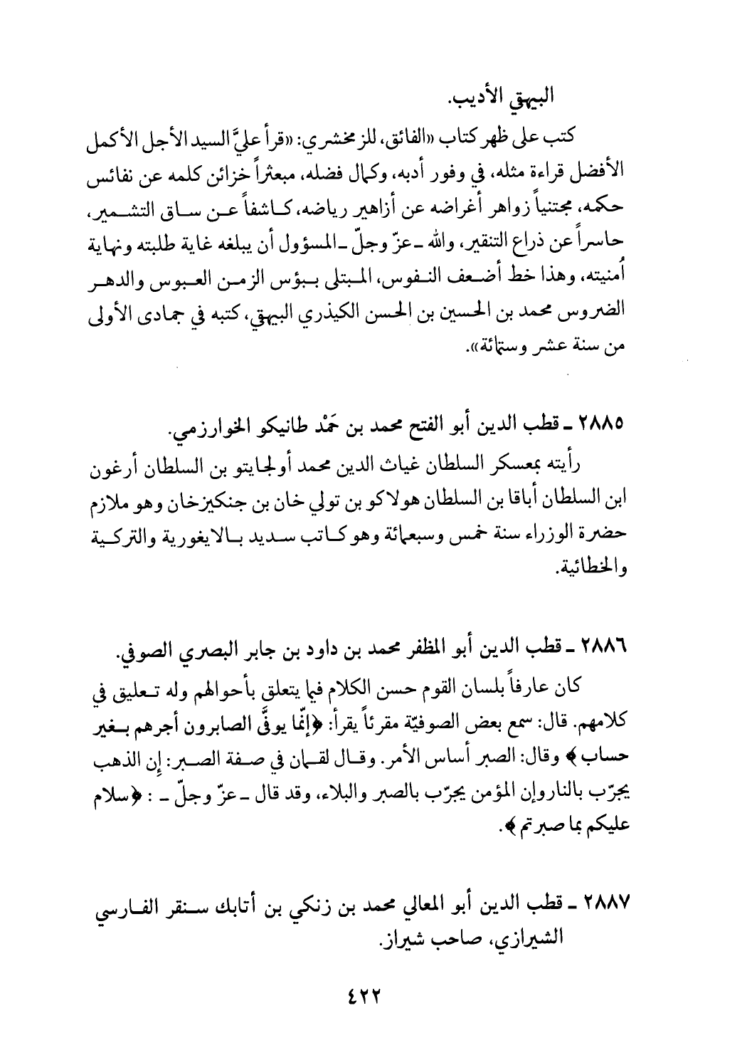 2885 - قطب الدين أبو الفتح محمد بن حمد طانيكو الخوارزمي.