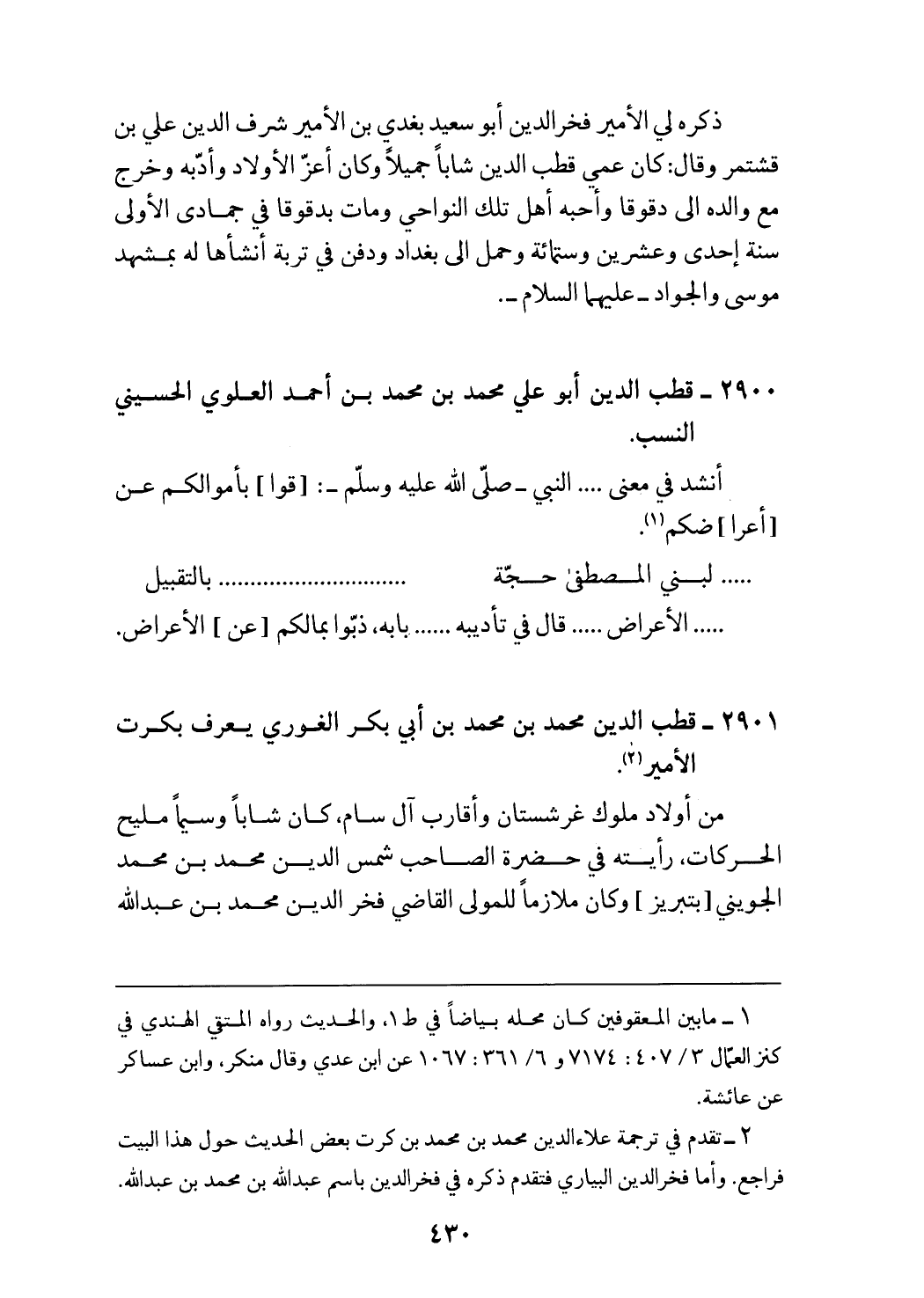(¬2) تقدم في ترجمة علاء الدين محمد بن محمد بن كرت بعض الحديث حول هذا البيت فراجع. وأما فخر الدين البياري فتقدم ذكره في فخر الدين باسم عبد الله بن محمد بن عبد الله.