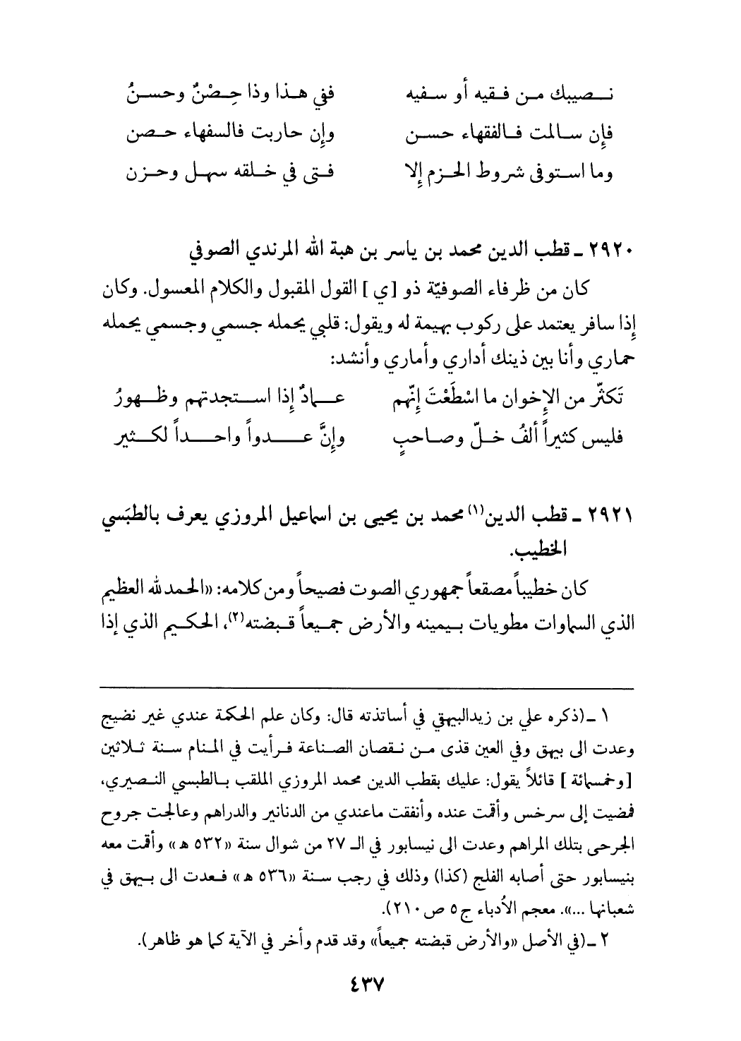 2921 - قطب الدين (¬1) محمد بن يحيى بن اسماعيل المروزي يعرف بالطبسي