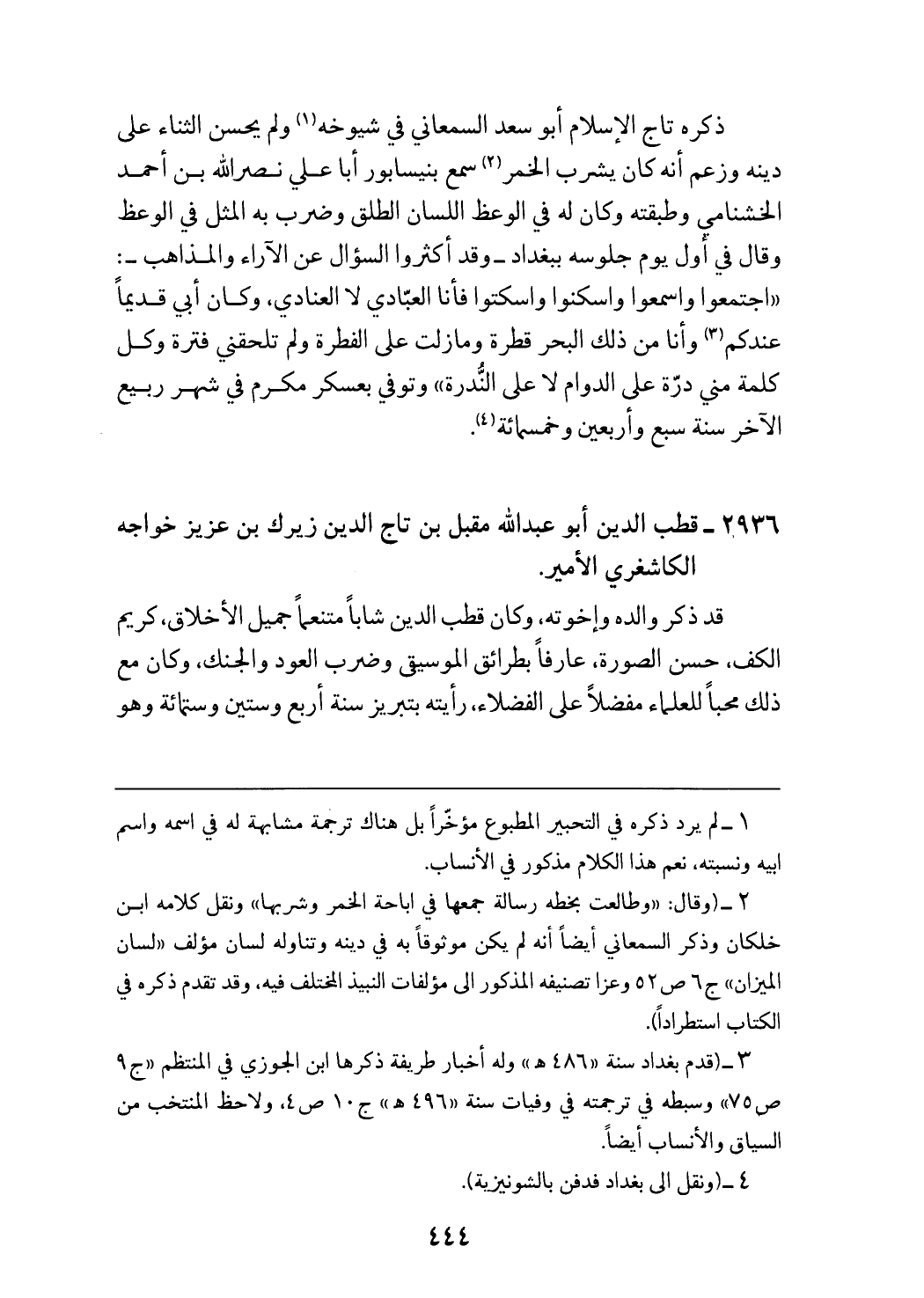 (¬2) (وقال: «وطالعت بخطه رسالة جمعها في اباحة الخمر وشربها» ونقل كلامه ابن خلكان وذكر السمعاني أيضا أنه لم يكن موثوقا به في دينه وتناوله لسان مؤلف «لسان الميزان» ج 6 ص 52 وعزا تصنيفه المذكور الى مؤلفات النبيذ المختلف فيه، وقد تقدم ذكره في الكتاب استطرادا).