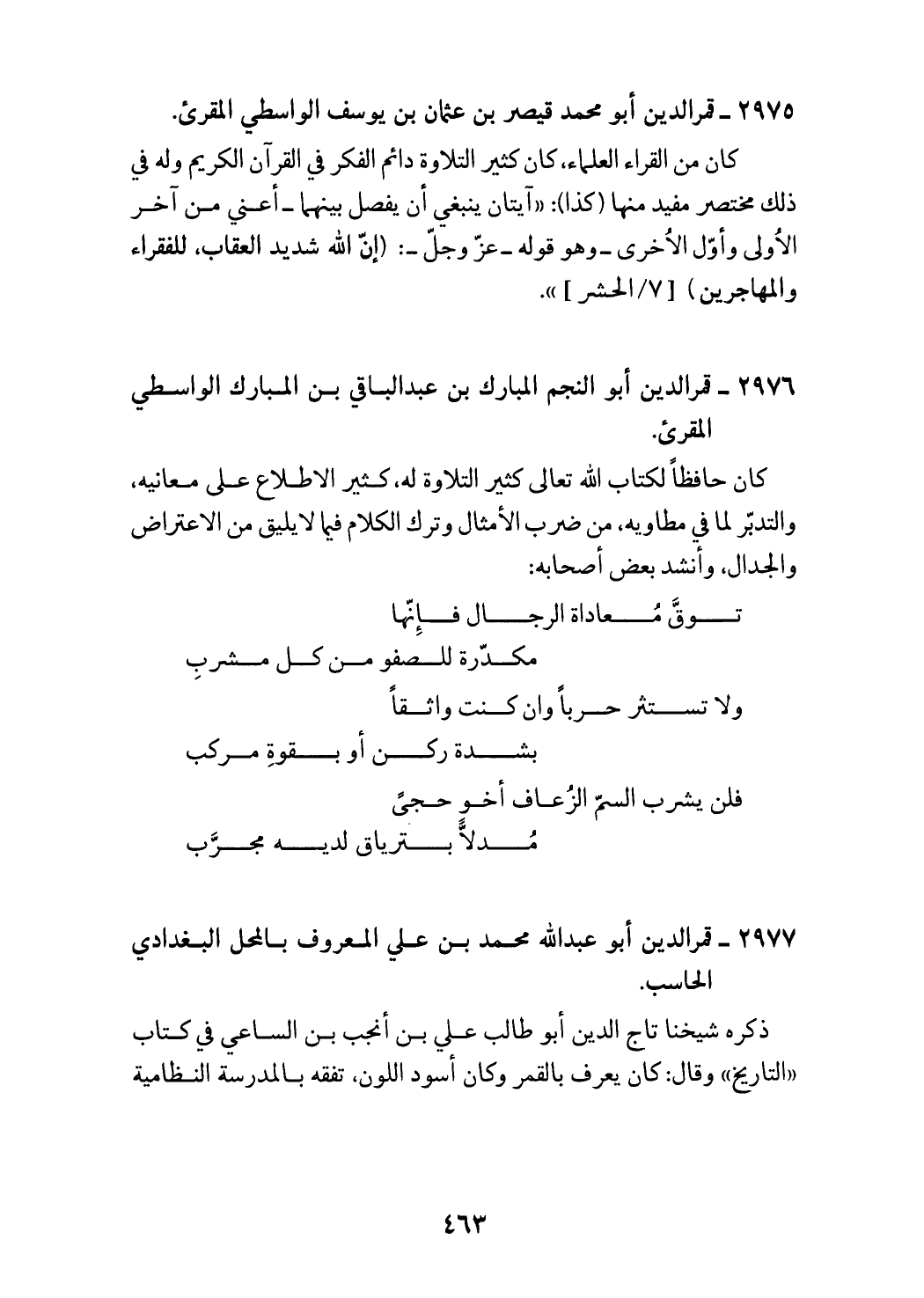2975 - قمر الدين أبو محمد قيصر بن عثمان بن يوسف الواسطي المقرئ.
